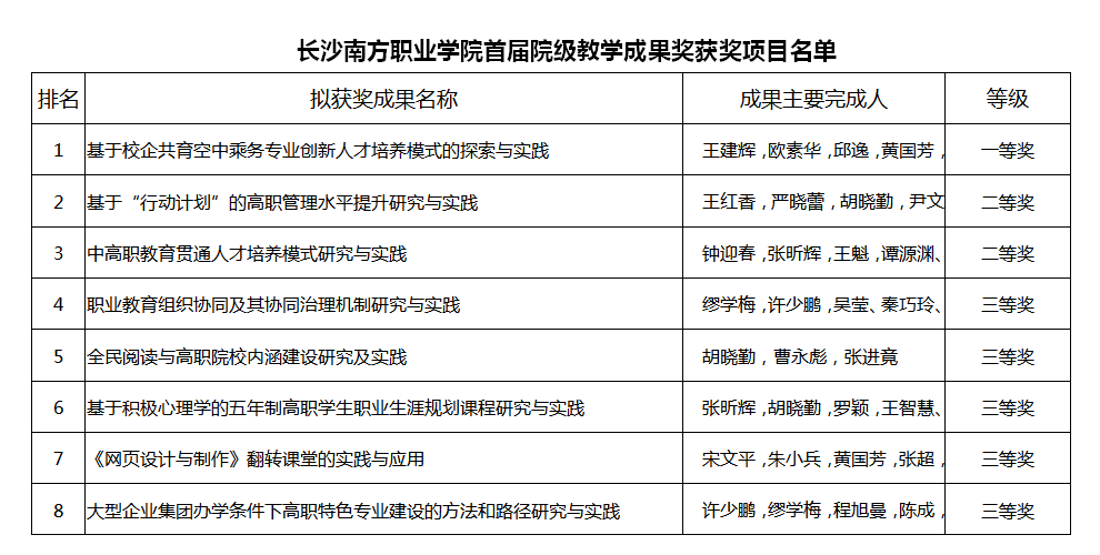 长沙南方职业学院首届院级教学成果奖获奖项目名单.png