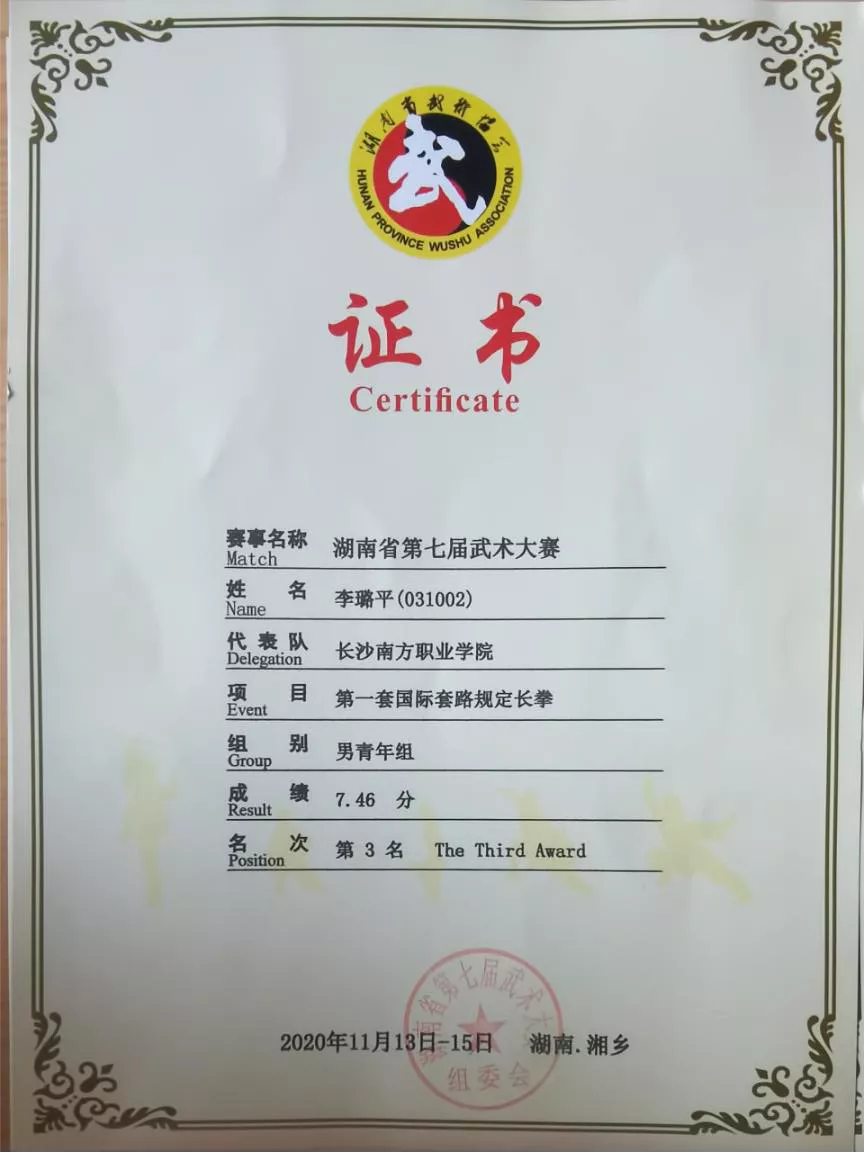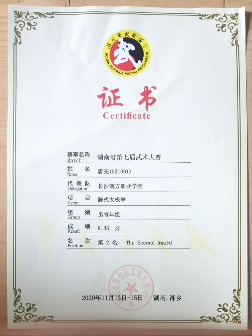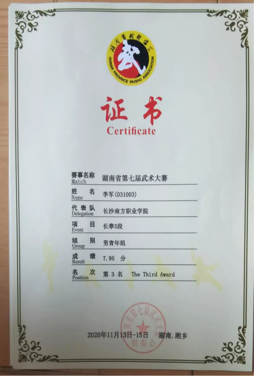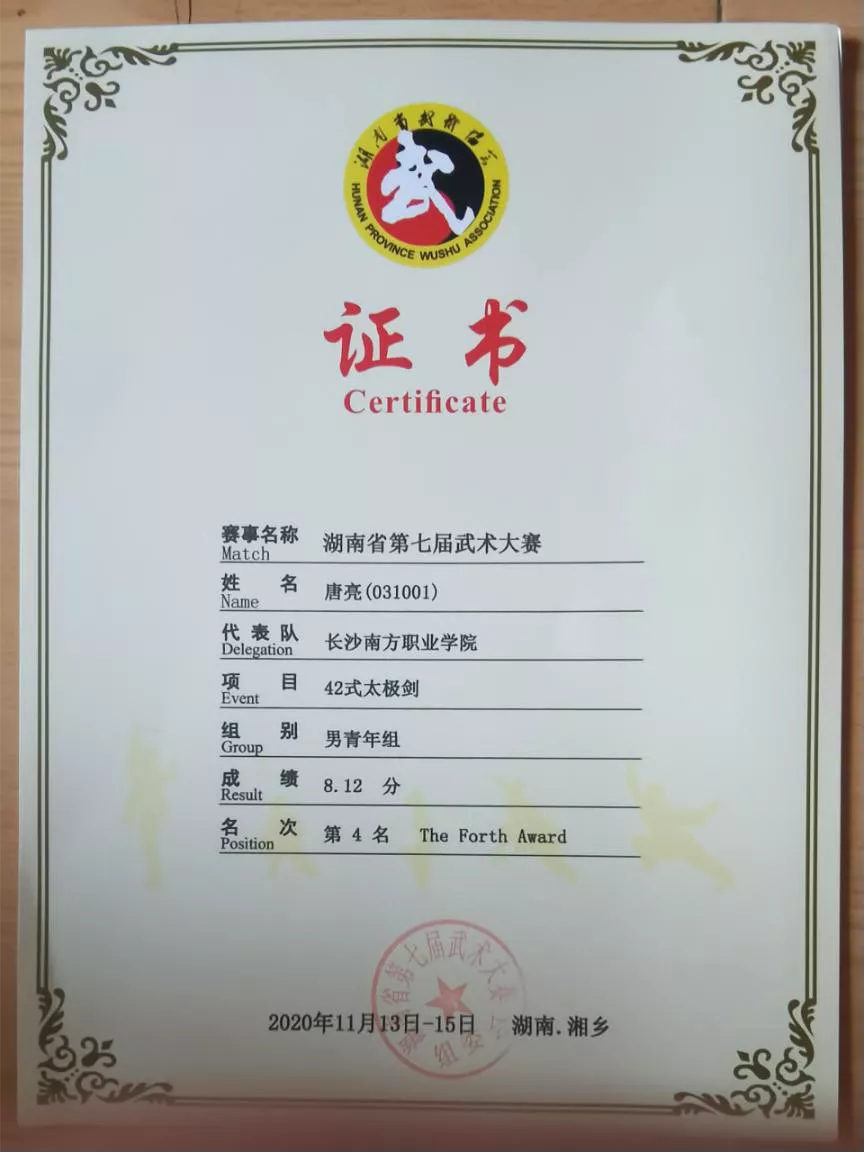 我院荣获湖南省第七届武术大赛总决赛集体一等奖