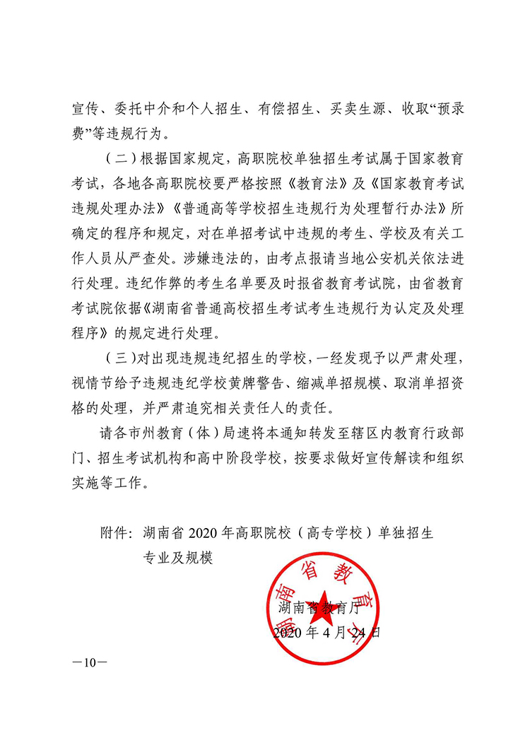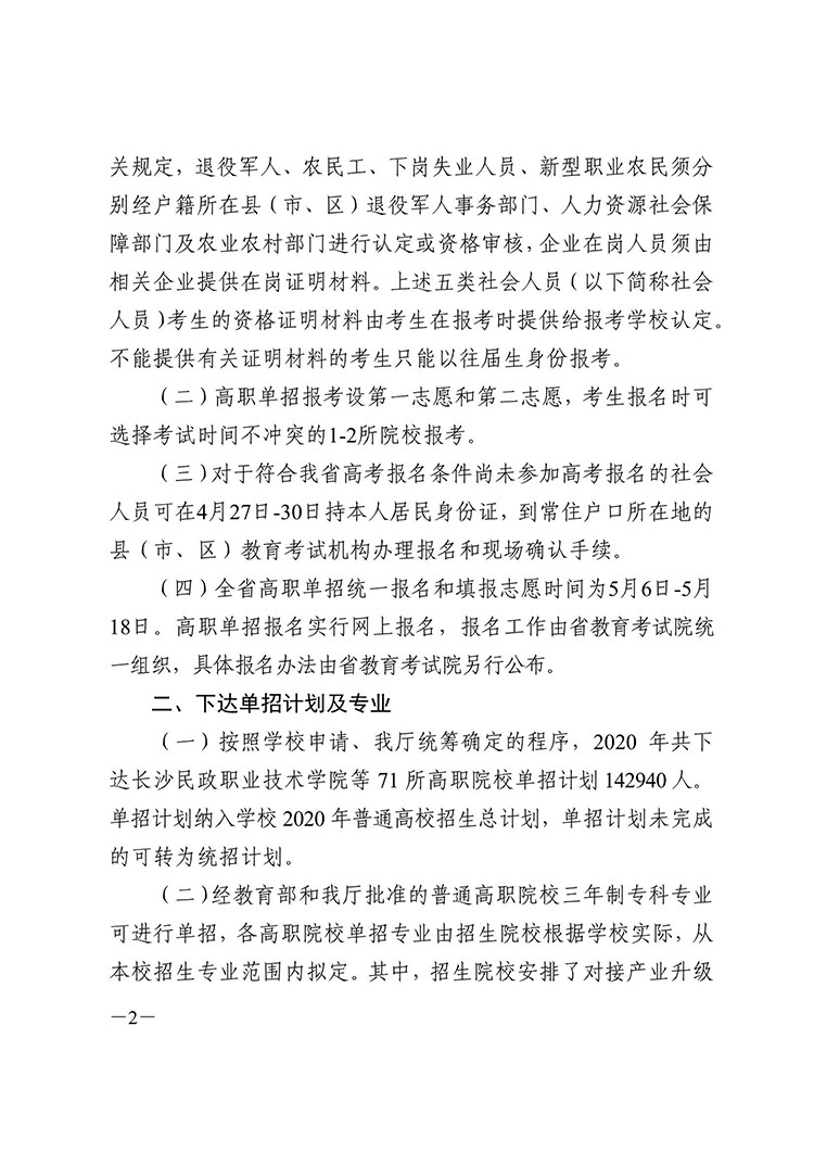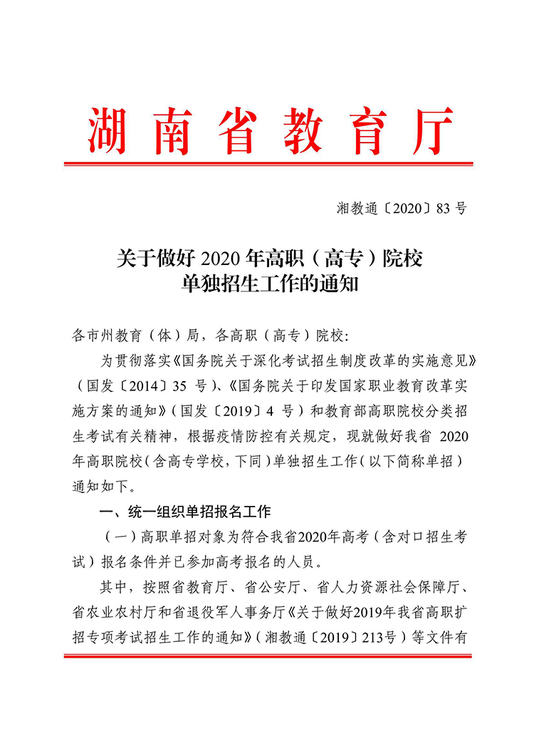 关于做好2020年高职(高专)院校单独招生工作的通知