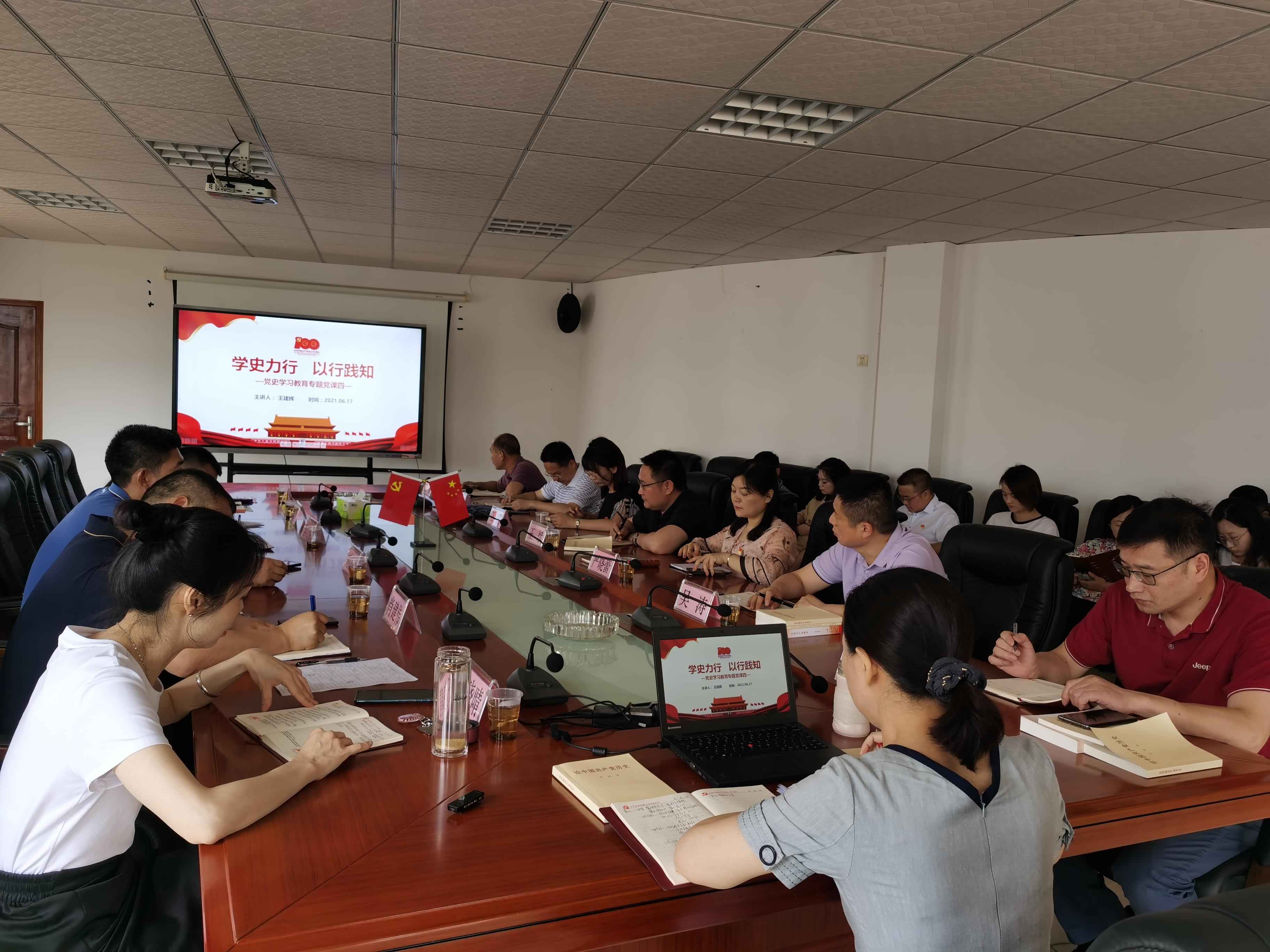 6月17日,长沙南方职业学院在行政办公楼419会议室召开党史学习教育第四次专题学习暨党委理论学习中心组(扩大)学习。学院党委委员王建辉同志以“学史力行,以行践知”为主题,为学院党员干部讲授了一堂精彩的党课。
