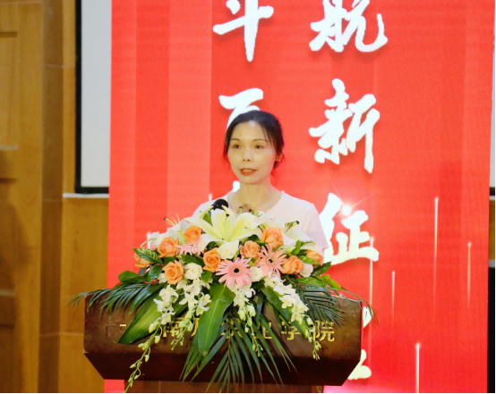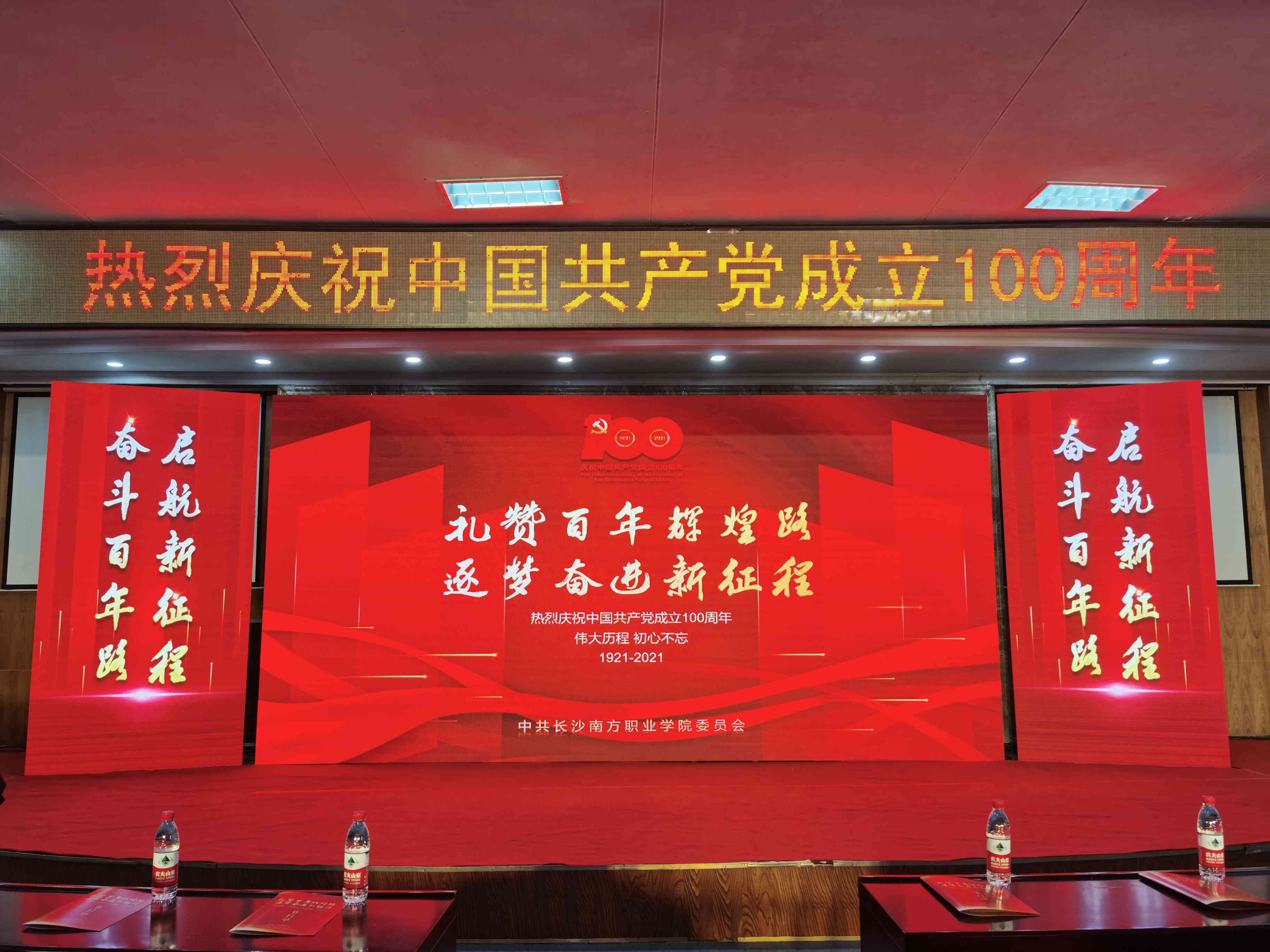 党委书记任晓晴在讲话中回顾了我们党的百年峥嵘历史和作出的伟大贡献,总结了一年来学院党建工作取得的成效:理论武装持续强化、党史学习教育成效明显、党建重点任务按期完成、党建引领推动事业发展。她强调:建设社会主义现代化强国,推进湖南“三高四新”战略和学院事业高质量发展,是每一位党员的责任;奋进新时代,立足岗位建新功是每一位党员的使命。她希望全体党员要以党史学习教育为契机,传承红色基因,赓续共产党人的精神血脉,不忘初心、牢记使命,齐心协力落实立德树人根本任务,坚持“产教整合,学培融通”发展思路,创建师生向往、家长满意、社会认可的特色品牌学校。