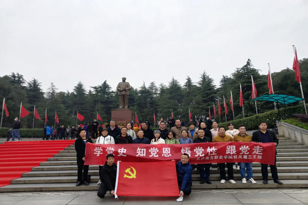 为追溯红色记忆,缅怀革命先烈,增强支部凝聚力,12月8日,长沙南方职业学院机关党总支第三支部全体党员赴红色教育基地韶山,开展“学党史、知党恩、悟党性、跟党走”主题党日活动,追寻伟人足迹,学习百年党史。