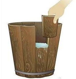 盛水的木桶是由多块木板箍成的,盛水量也是由这些木板共同决定的。若其中一块木板很短,则此木桶的盛水量就被限制,该短板就成了这个木桶盛水量的“限制因素”。若要使此木桶盛水量增加,只有换掉短板或将其加长才行。一个木桶无论有多高,它盛水的高度取决于其中最低的那块木板。