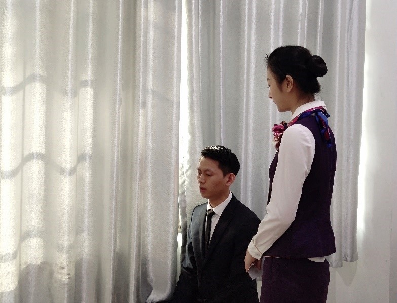 整合多方资源,推进思政教师和专业教师协同,促进思政课程和课程思政同向同行,发挥线上线下育人平台作用。在空中乘务专业的技能考核中,不仅测试学生的客舱服务、客舱应急处置和民航贵宾接待职业技能水平,同时还考查学生敬畏意识、安全意识、服务意识、团结协作能力和跨文化服务能力。例如,技能考核题目模拟岗位实际工作任务,创设了飞机客舱和机场贵宾接待室两大场景;创新乘务组团队合作考核方式,体现了岗位工作任务的真实要求;依据行业标准和国家战略融入专业“五新”,关注民航服务的精细化和品牌化需求。