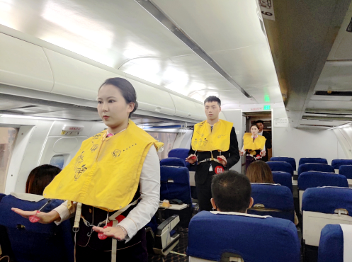 2020年是学校课程思政建设年,空中乘务专业在实施“三全育人”综合改革过程中始终坚持以理想信念教育为核心。教研室老师进行集体思政备课,挖掘课程思政元素,强调敬畏规章、敬畏生命、敬畏职责的精神。例如,结合基于民航真实事件“川航3U8633航班紧急迫降成都双流机场”拍摄的电影《中国机长》等,让学生更加明晰空中乘务员的责任和担当,树立民航精神。