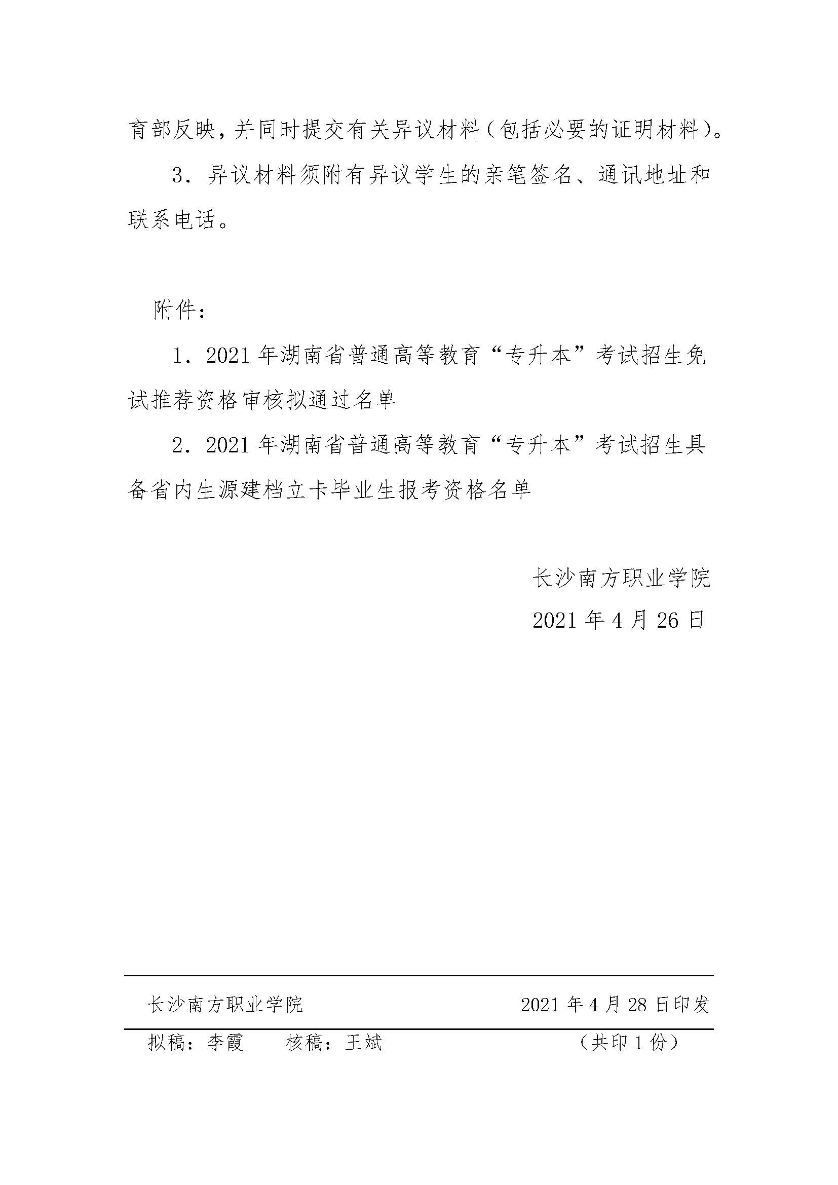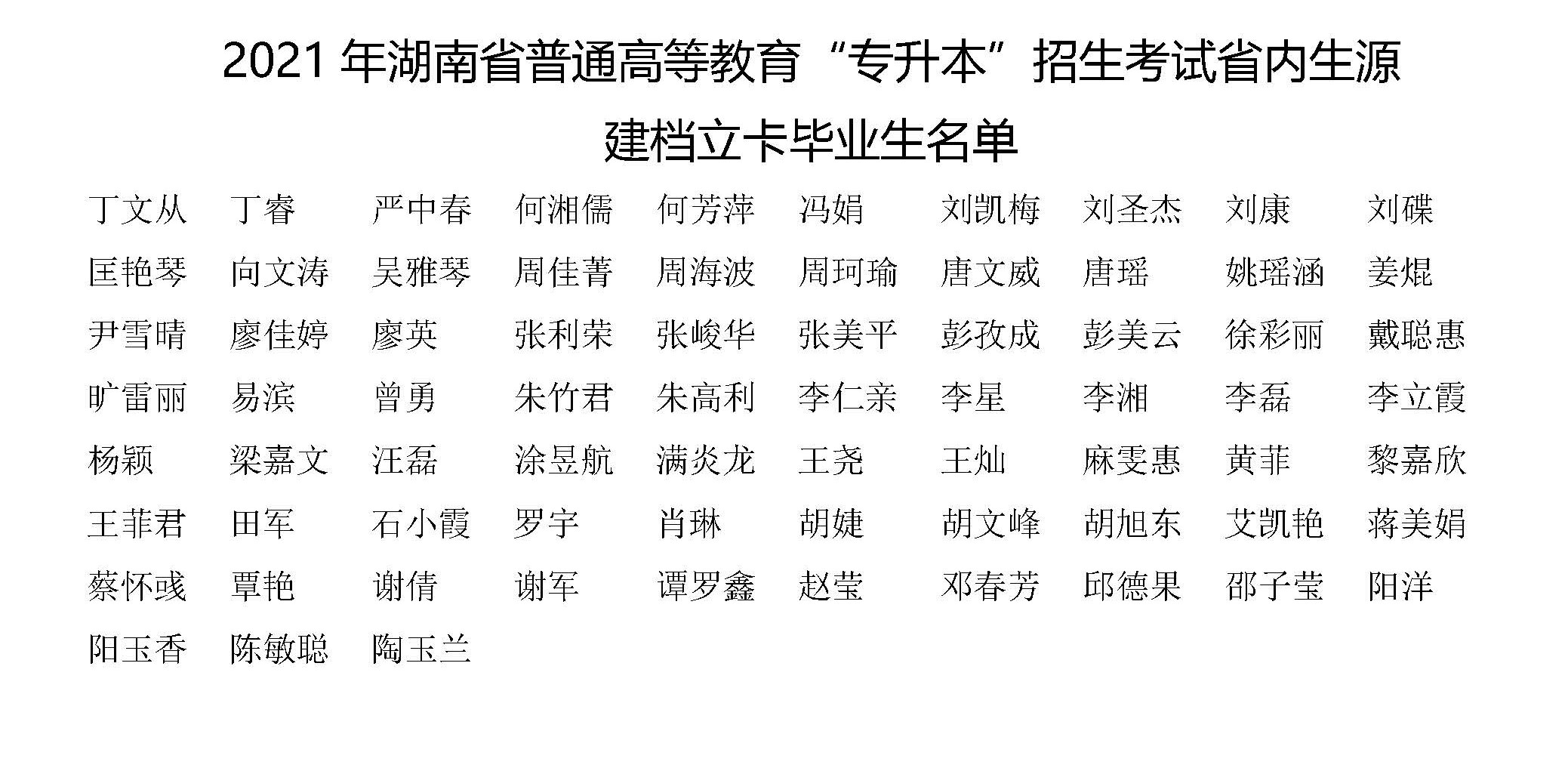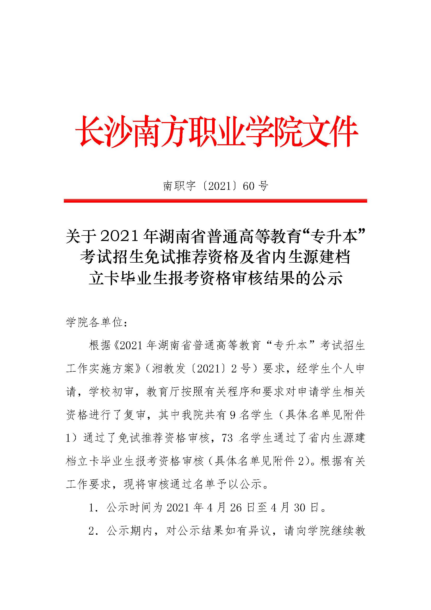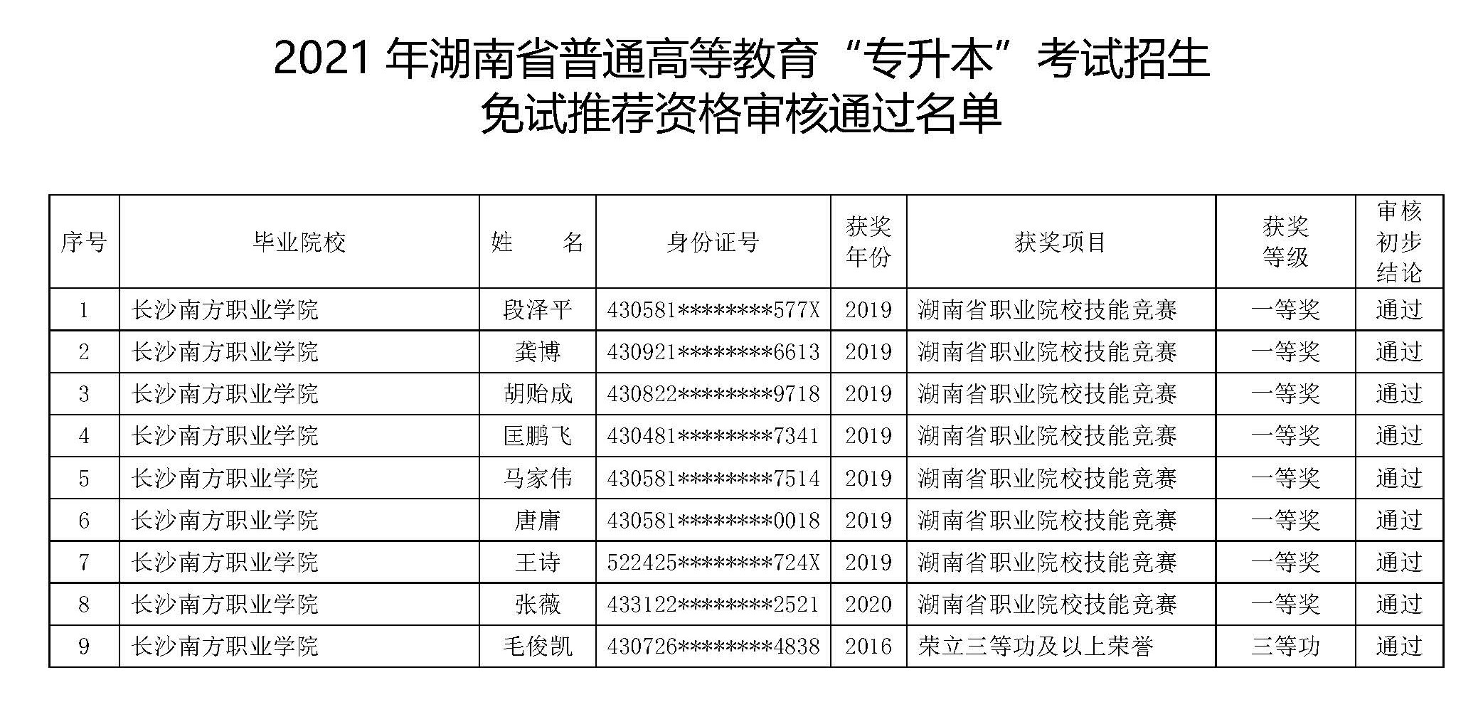 关于2021年湖南省普通高等教育“专升本” 考试招生免试推荐资格及省内生源建档立卡毕业生报考资格审核结果的公示