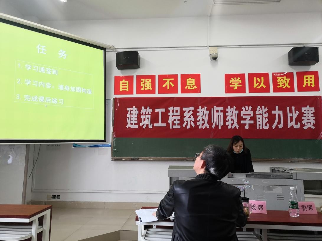 为深入贯彻落实《国家职业教育改革实施方案》,坚持“以赛促教、以赛促学,以赛促改、以赛促建”的总体思路,引导教师以立德树人为根本任务,推进“三全育人”,落实“课程思政”要求;引导师生更好适应疫情防控常态化条件下线上线下混合式教学的需要,确保人才培养质量稳步提高;引导持续深化教师、教材、教法“三教改革”,促进育训结合、书证融通;引导以高素质教师队伍建设为着力点,推进高水平、结构化教师教学团队在信息技术应用、团队协作等方面的水平,根据学院教师教学能力竞赛文件精神,建筑工程系于2021年5月25日下午开展了教师教学能力比赛。