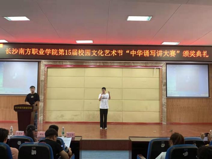接着,主持人请获奖学生上台领奖,获奖学生是优秀代表,他们热爱学习,勤于思考,乐观自信,立志成才,在他们身上,集中体现了长沙南方职业学院学生蓬勃向上、积极进取的精神面貌,充分展示了他们传承中华经典文化、承载民族希望茁壮成长的时代风采,为全体学生树立了榜样。