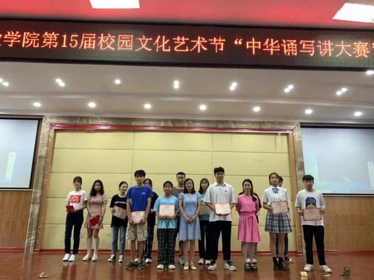 随后,学工处刘文根处长慷慨激昂地宣读了获得第15届校园文化艺术节之“中华诵写讲”大赛奖项的学生名单,获奖学生将获得校级奖证书及奖品,希望他们能再接再厉,继续加油。