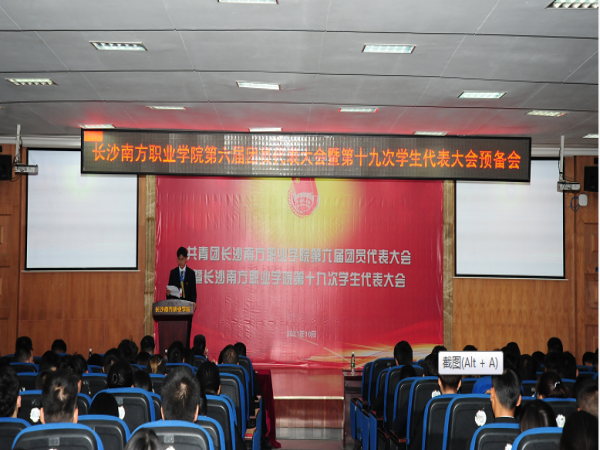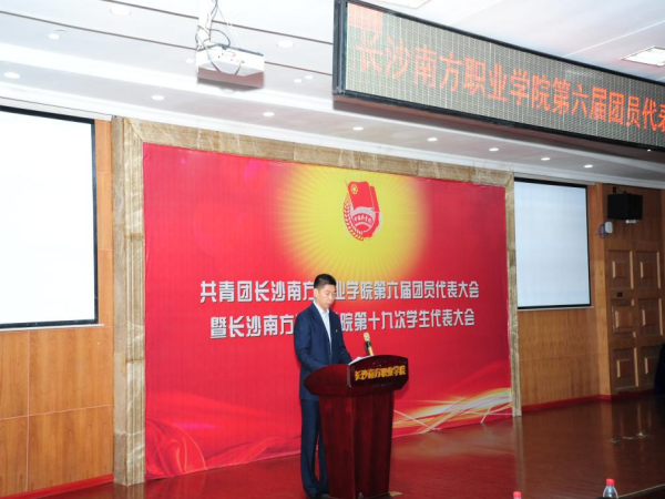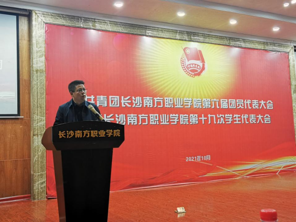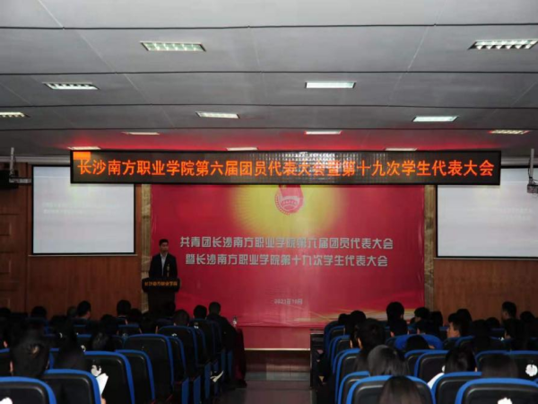 2021年10月13-14日,共青团长沙南方职业学院第六届团员代表大会暨长沙南方职业学院第十九次学生代表大会在我校学术报告厅隆重举行。学院党委书记赵小群、副院长吴涛、纪检监察室主任骆勤、校团委书记刘文根以及各院系(部)学工负责人、团总支书记及300余名教师代表、辅导员代表、团员代表、学生代表出席本次大会。大会特邀来宾南京体育学院奥林区克学院学工部张君部长参加并致贺词。本次大会分为预备会议和正式会议,会议分别由校团委书记刘文根和副书记夏妍主持。