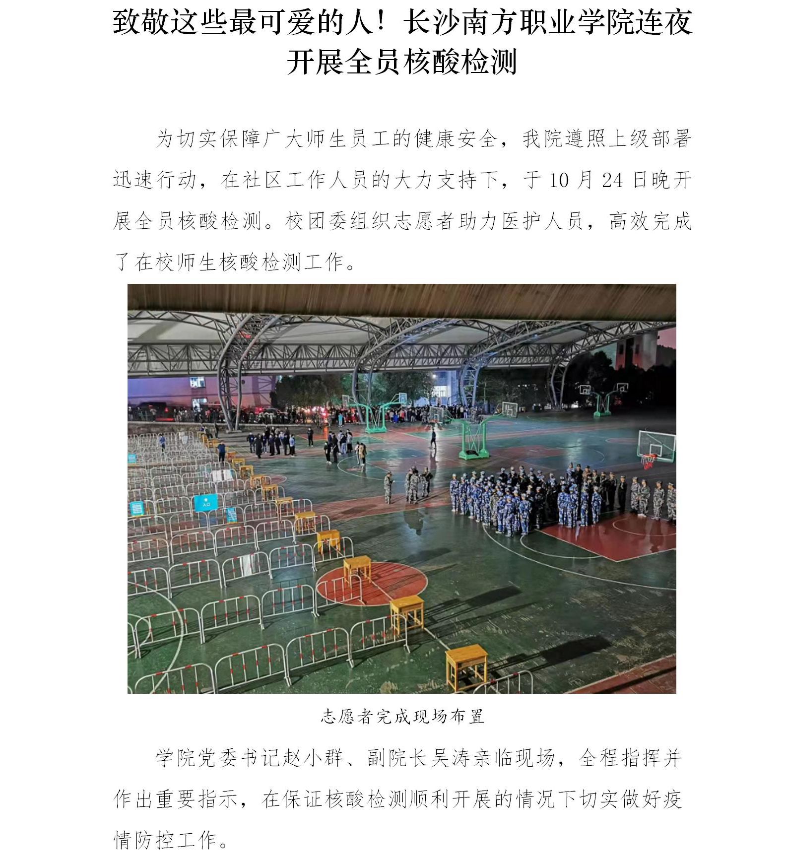 致敬这些最可爱的人!长沙南方职业学院连夜开展全员核酸检测