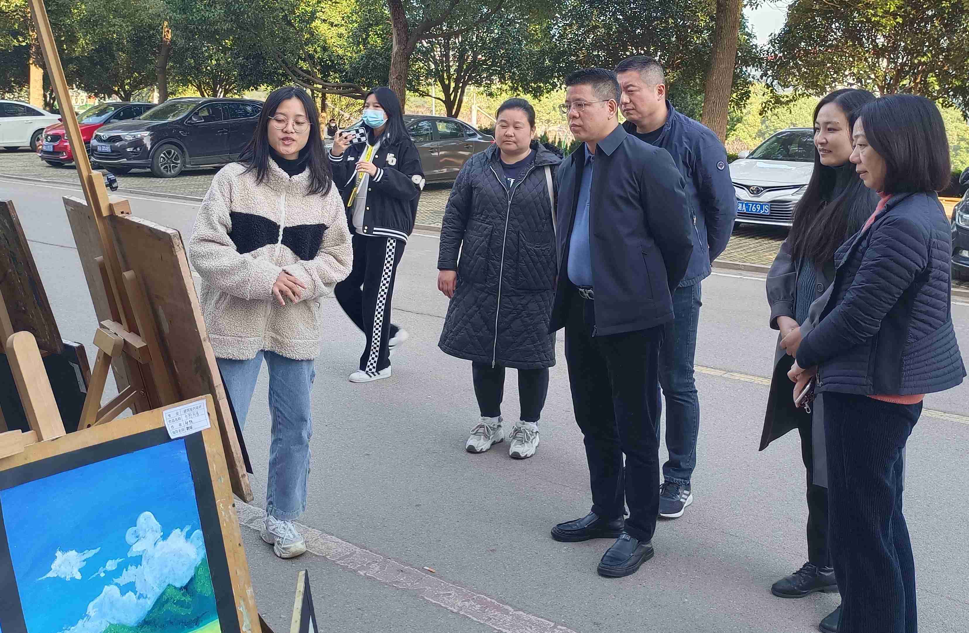 11月24日,冬日的暖阳洒满校园。建筑工程系在学院A、B、C、D栋教学楼东侧的道路边举办了2020级建筑室内设计专业学生采风作品展。学院党委书记赵小群同志、吴涛副院长、王建辉院长助理莅临现场观看、指导。教务处处长张教授、副处长施敏副教授、董建民督导、纪检监察室主任骆勤、建筑工程系主任项林副教授、彭伟副主任、建筑室内设计教研室主任曾文妮副教授陪同观展。