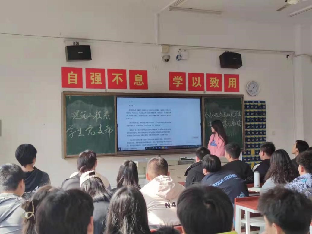 “作为一名大学生,要肩负历史使命,坚定前进信心,立大志、明大德、成大才、担大任,努力成为堪当民族复兴重任的时代新人……”建筑工程系建筑室内设计专业粟慧琳同学在发言中说道。