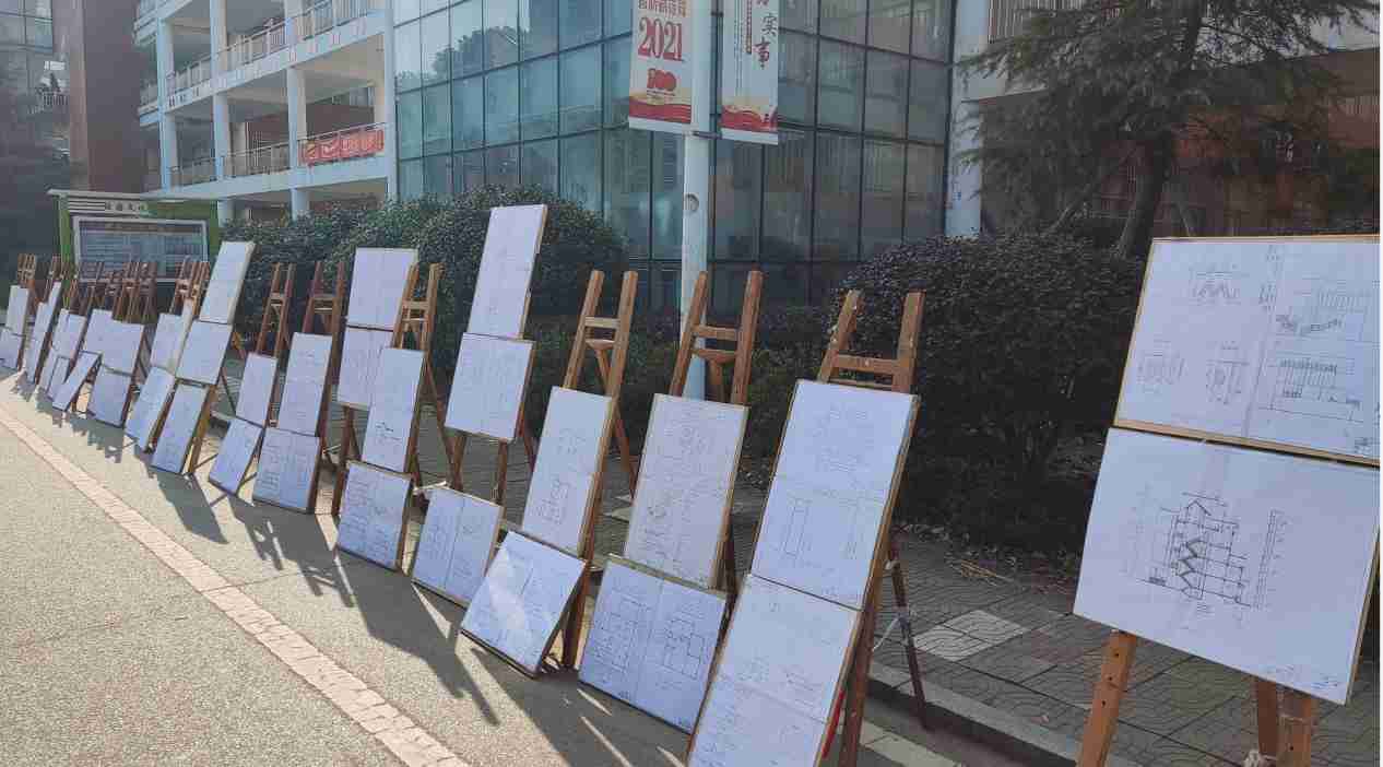 12月23-24日建筑工程系在B栋教学楼前举办了一次别开生面的工程制图优秀作品展,这次展览共展出2021级建筑工程技术、工程造价、建筑消防技术专业班的同学近80副作品,吸引了学院许多同学驻足观看。