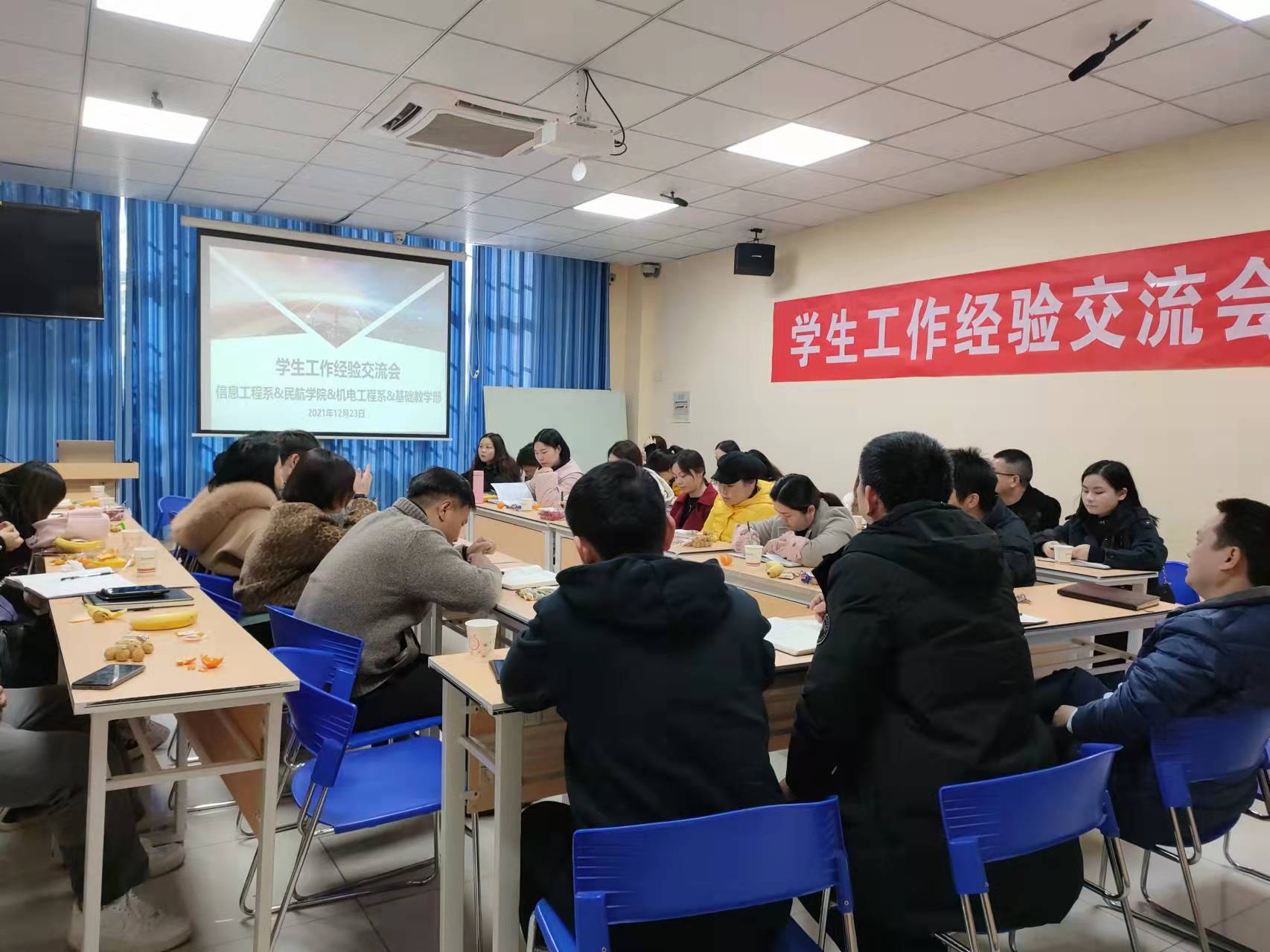 为进一步促进学生工作专业化发展,搭建交流学习的平台,12月23日下午,学工处牵头信息系承办举行学生管理工作交流专项培训。学院学生工作处处长刘文根、副处长周灿、院团委副书记夏妍、相关院系部副主任、美和易思学工团队及三十余名辅导员参加。