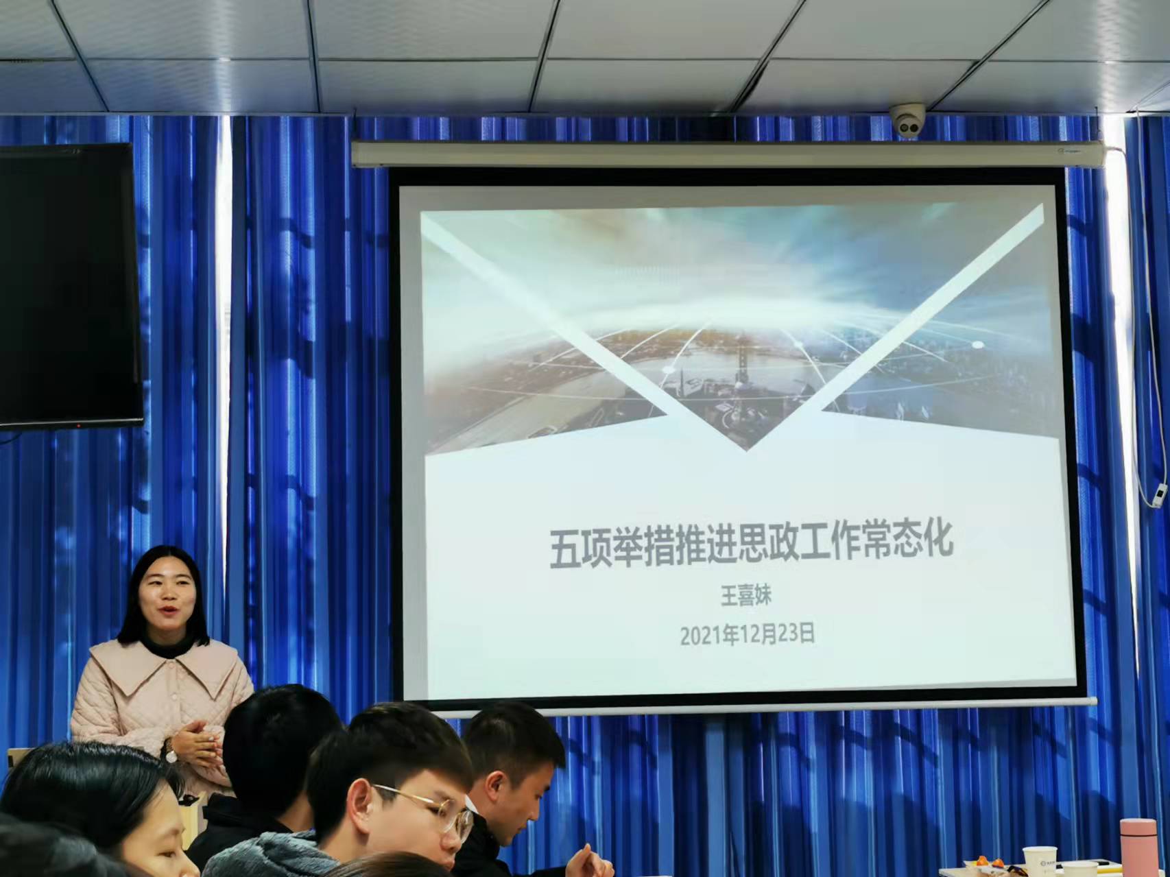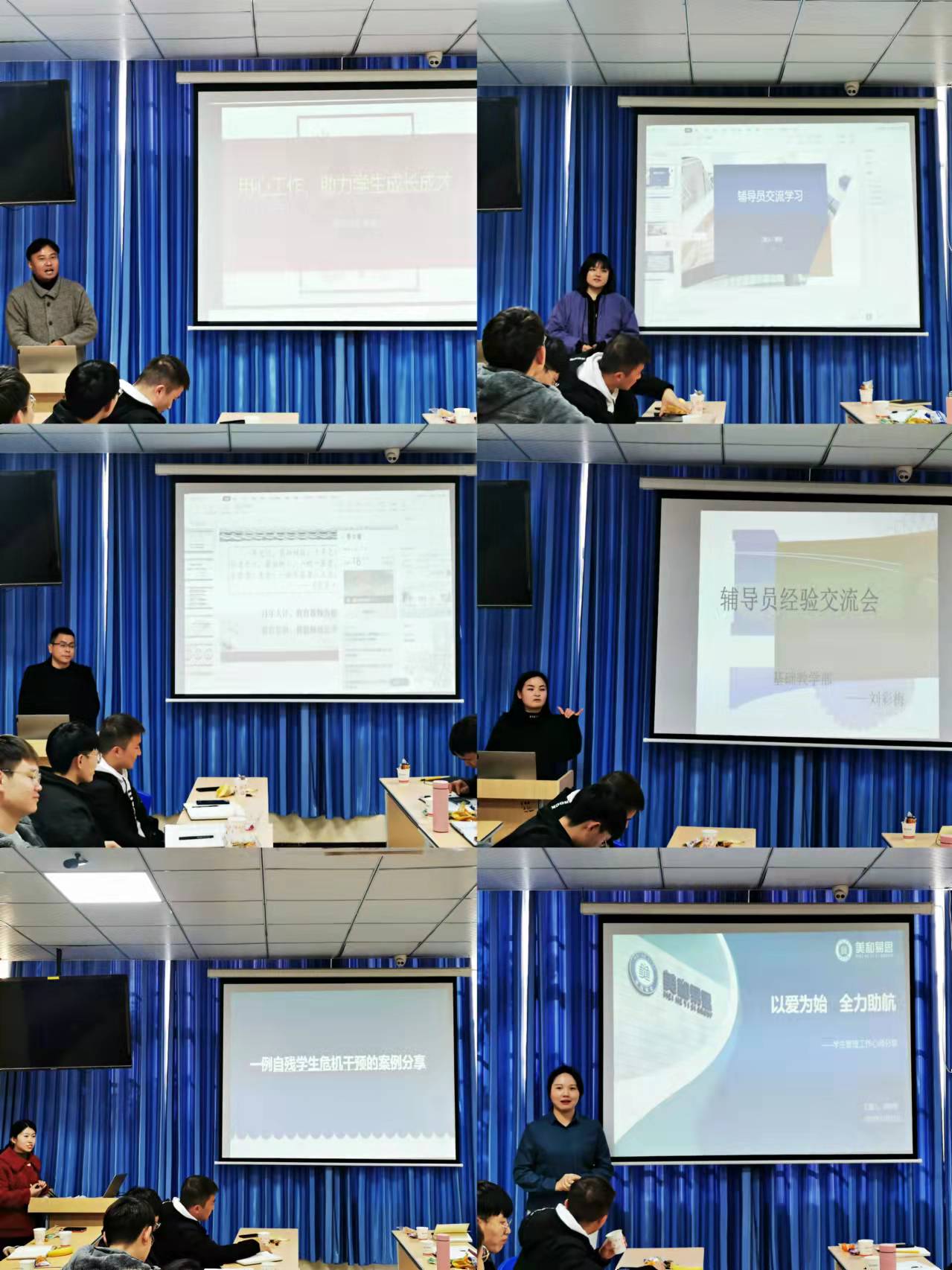 郑妍妍老师分享学生干部管理中组织架构的管理经验。罗晓芳老师以一例自残学生危机干预的案例进行了剖析,提出了应对的措施。肖尧结合自身工作经历,分享用心工作,助力学生成长成才的经验。刘彩梅、谌军超从加强思政引领,做新时代四有好老师角度谈了几次的心得体会。姜芬老师从学生职业生涯规划、顶岗实习安全管理方面结合自身案例谈了自己的宝贵经验。