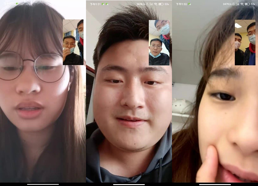 随后,李兵书记、童舟书记和龚鹏老师通过微信视频慰问了被隔离的学生,李兵书记询问了各位同学的学习和生活情况,嘱咐同学们要做好自身防护,调整心态,注意饮食均衡、加强锻炼、合理规划学习和休息时间,与家人多联系,有困难及时与老师沟通。