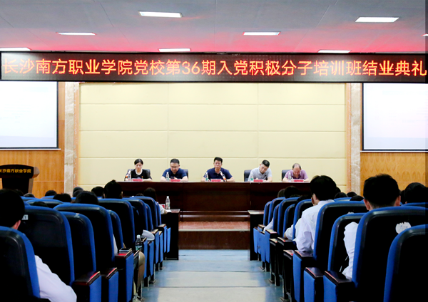 6月7日下午,长沙南方职业学院党校在学术报告厅举行第36期入党积极分子培训班结业典礼。省政府督导专员、党委书记赵小群、宣传部长、组织部长、学工部长、纪检监察室主任、各党总支书记、副书记、指导老师、优秀学员、优秀组长及学员代表共计300余人参加结业典礼。结业典礼由宣传部长严晓蕾主持。