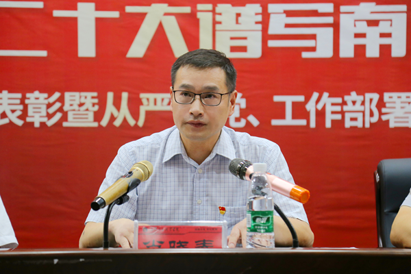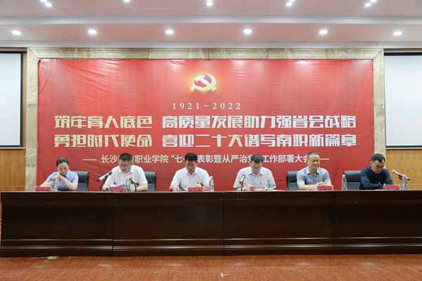 7月2日上午,长沙南方职业学院在学术报告厅隆重举行庆祝建党101周年“七一”表彰暨从严治党、工作部署大会。政府督导专员、学院党委书记赵小群、院长肖晓春、副院长王金、吴涛、肖建伟、院长助理王建辉出席会议,全体教职工参加会议,会议由副院长王金主持。