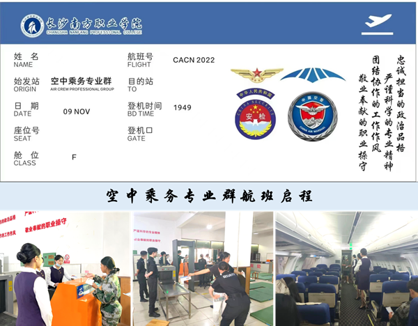 (文/图 民航学院)“女士们、先生们,欢迎您搭乘南方职院的航班。本次航班前往目的地是‘你的理想’,飞行时间约8760小时,预计到达时间为2025年6月30日。飞机即将起飞,请您与我们一起共度接下来的美好旅程。”伴随着客舱广播,空中乘务专业群空中乘务、民航运输服务、民航安全技术管理三个专业2022级新生航班开始启程。