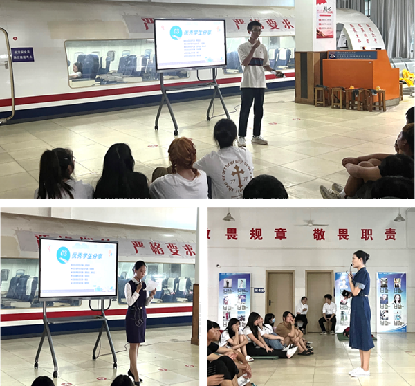 学长和学姐的亲身经历和专业技能更带来震撼。南方职院首批“南职工匠”何胜颖同学用丰富的经历和荣誉获得学生的阵阵掌声;专升本已上岸的张剑锋学长用自己“宝剑锋从磨砺出”的经历让部分同学已经埋下了继续求学的种子;南方航空贵宾接待员张维莹同学分享了工作中的趣事和坎坷;对于无法到场的乘务员代表颜俊豪、谢盛兰同学,安检员代表蒋思雅同学、民航客运员代表谢玉同学,采用云对话的形式与新生交流感想。