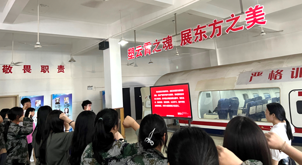 客舱安全演示“我志愿投身中国民航事业……”活动最后以庄严宣誓结尾,标志着空中乘务专业群2022级新生从此刻起正式投入民航事业。学生满怀信仰,牢记“三个敬畏”,践行“当代民航精神”,为祖国撑起万里蓝天。