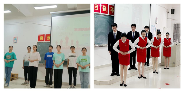 新生入学教育活动分为三个环节。首先由高铁乘务教研室主任张玲老师带领龚浩翔、王丽娇、邱逸、屈林影等专业教师进行专业介绍。内容涵盖行业发展、课程体系、师资团队、实训环境及学姐学长风采展示等方面,让新生建立专业认知。其次由职业素养模块周晓琴、刘英琪两位老师指导大三学生进行便装和职业装对比秀及礼仪操展示,让新生感受职业魅力。最后由彭泽红老师组织进行定制纪念车票发放和新生学情调查问卷填写。一张张具有专业特色的纪念高铁车票激发了学生对专业的认可,让新生增强行业自信。通过此次入学教育活动,高铁客运服务专业新生在专业老师的引领下见证了中国和湖南省高铁飞速发展的现状,不仅加深了对专业的认识,同时对行业发展有了更直观的感受,坚定了学习信念及对职业的热爱和向往,专业信念的种子在每个学生的心中悄然生根。