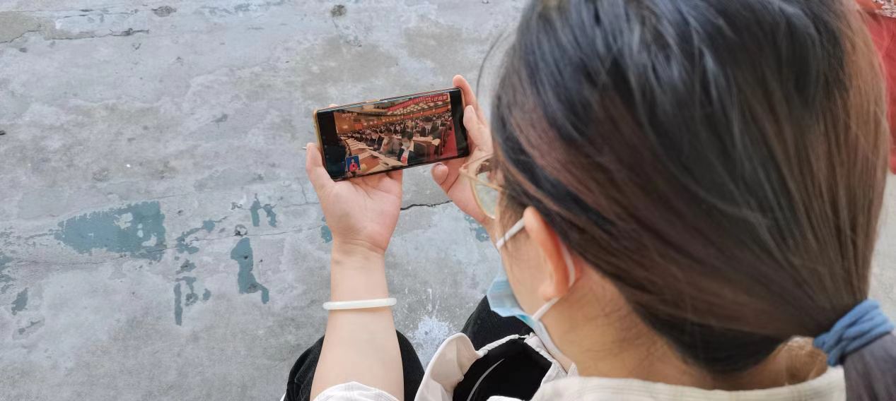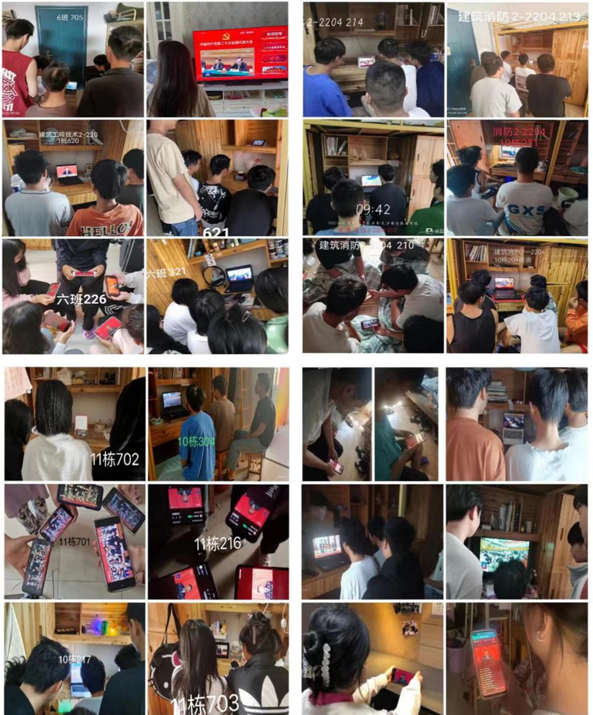 建筑工程系学生在所在寝室聆听党的二十大报告