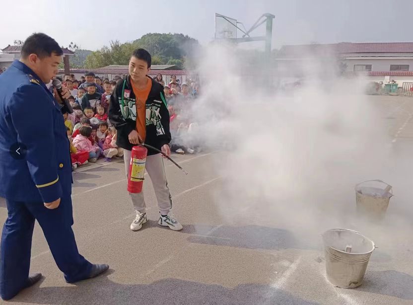 张家界市慈利县东岳观中心完全小学于11月9日举行消防安全疏散应急演练,专门邀请我校建筑工程系建筑消防技术专业2-2001班吴懿峰同学到该校为全校师生开展消防知识讲座,实地指导师生使用灭火器材以及火场逃生的正确方式等。