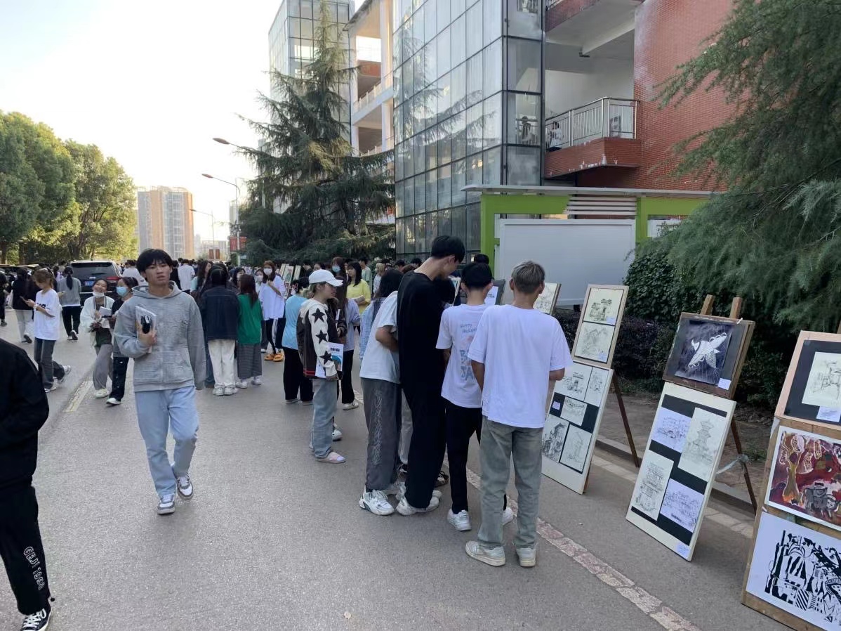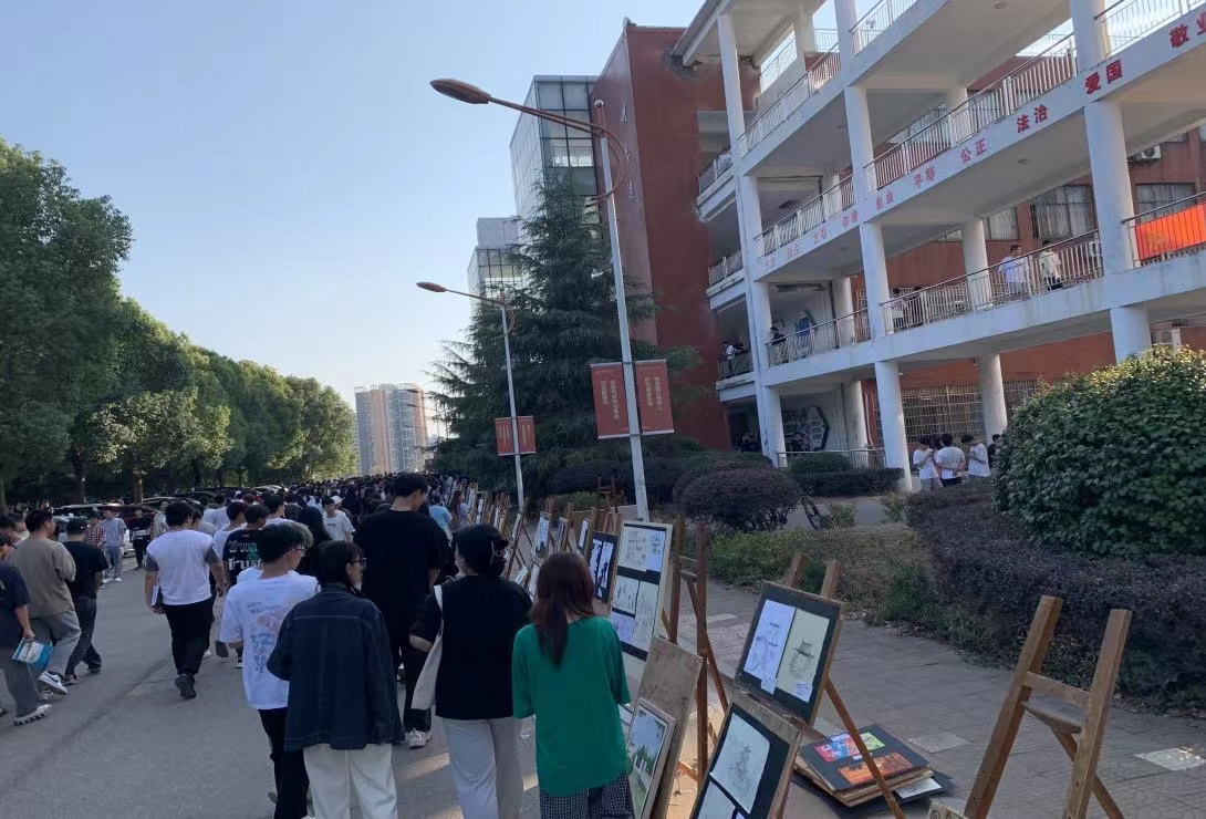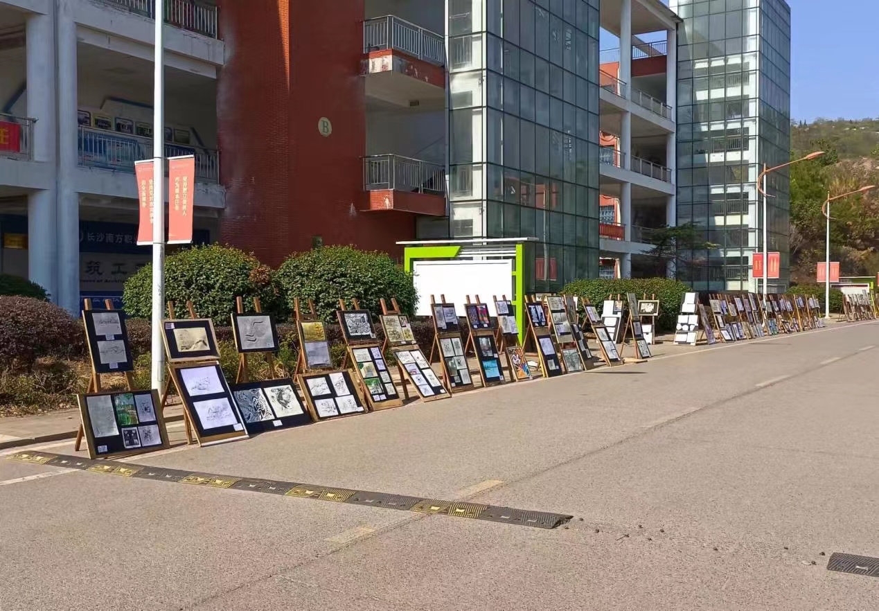 在党的二十大精神指引下,以教育评价改革为动力,建筑工程系2022年采风画展于11月9日在学校教学楼ABCD栋前的道路边隆重展出。建筑工程系主任项林副教授、副主任彭伟和建筑室内设计教研室主任曾文妮副教授到现场查看。下课铃一响,画展作品前挤满了驻足观看的同学们。