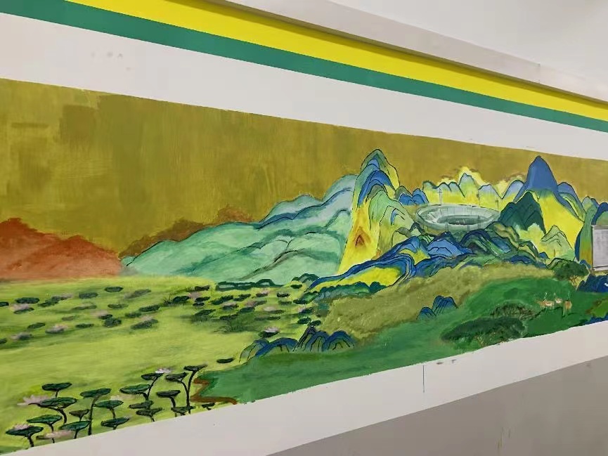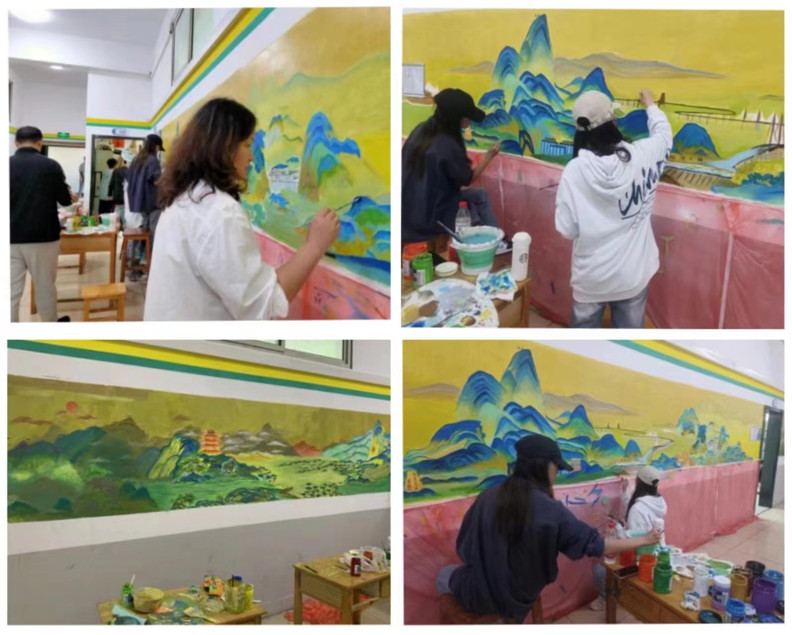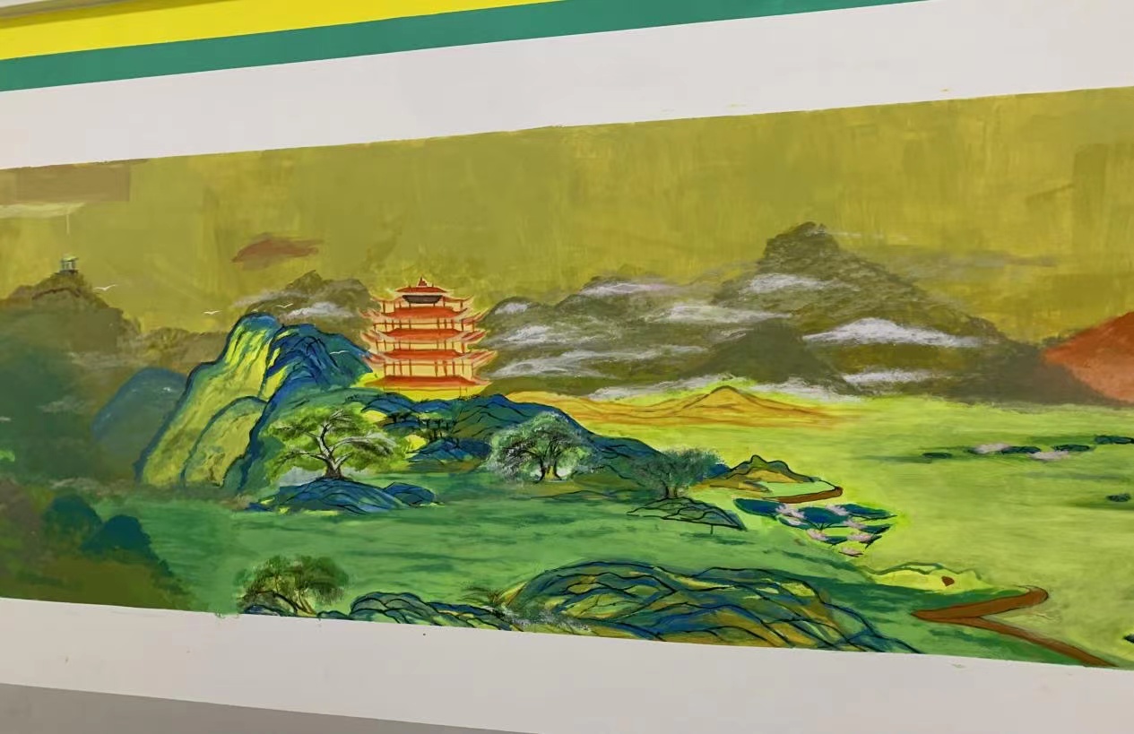 所收集到的凝聚着师生智慧和汗水栩栩如生的作品,特别是30多米长的祖国在我心中的“千里江山图”墙画,无不倾注着建筑工程系师生爱党、爱国、爱校的情怀。与其说本次校内采风是一次很成功的实践教学活动,不如说也是一堂极为生动的思政课。