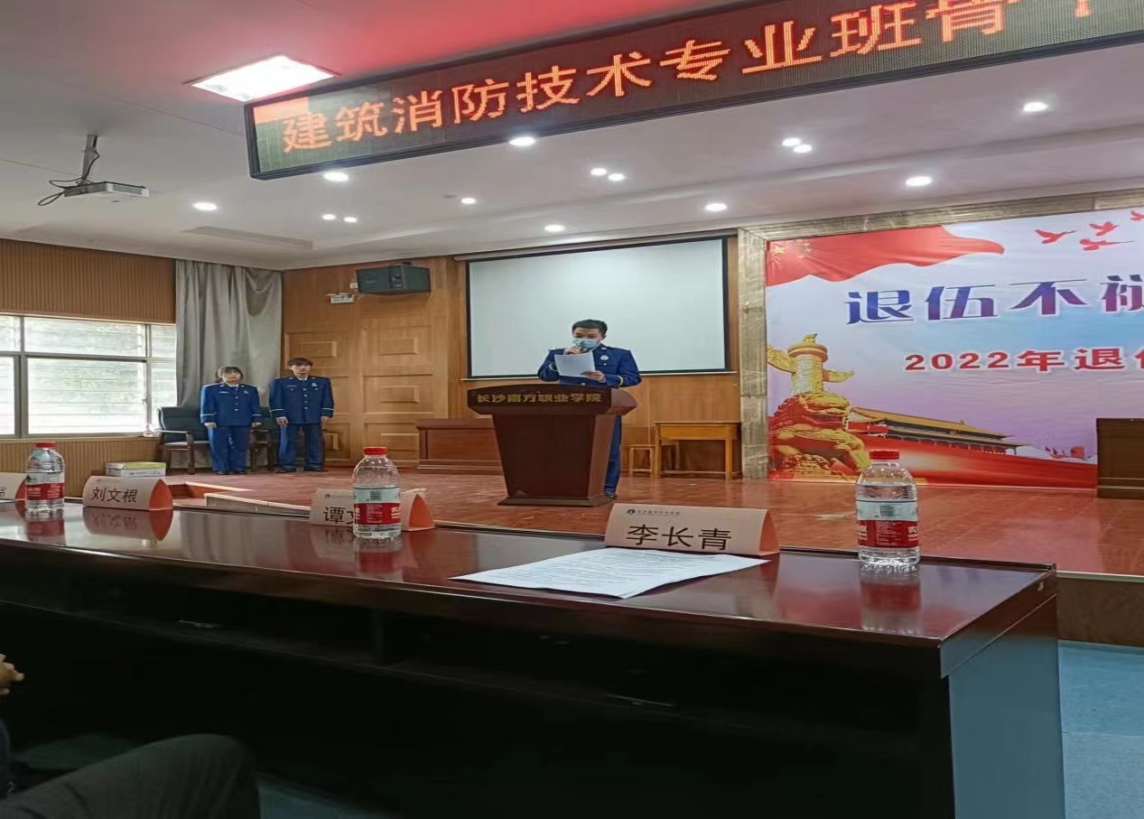 学生处刘文根处长对2022级建筑消防技术专业全体同学提出了三点希望:一是要提高思想认识,提升政治站位;二是勇于担当,敢于奉献。三是抱进取之心学习,怀感恩之心生活,让自己的人生道路走得更正、走得更远,在新的时代成就精彩的人生。