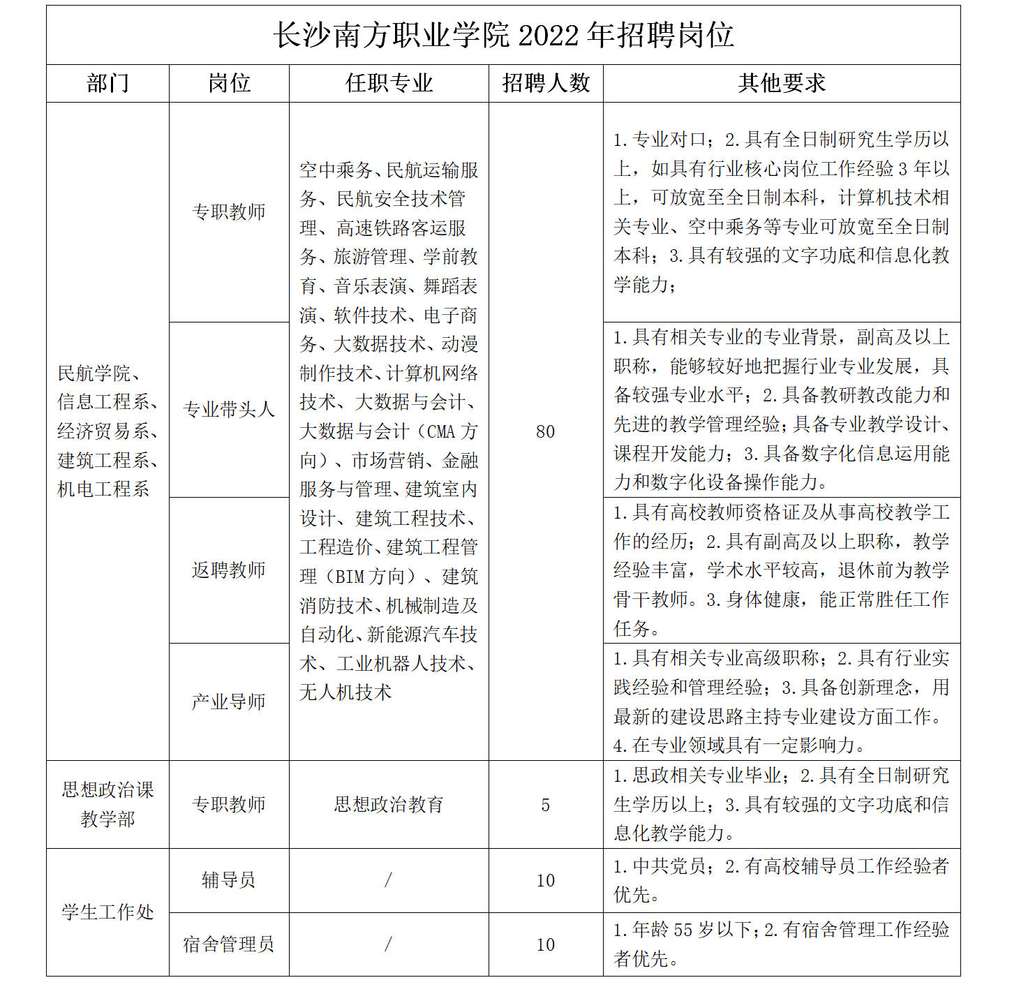招聘网站:应聘人员也可以直接在智联招聘(www.zhaopin.com)上搜索:长沙南方职业学院,进行简历投递。