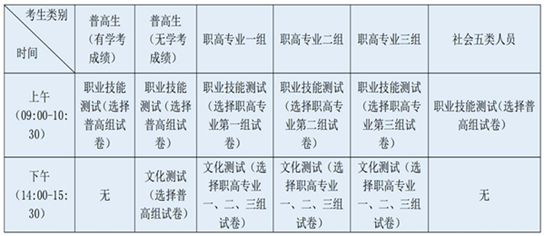 上午职业技能测试的试卷是套卷,里面包含普高组、职高专业一组、职高专业二组、职高专业三组共四套。