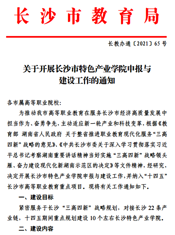 学校将以此为契机,按照市教育局要求,面向长沙区域经济社会及产业转型发展需求,进一步深化人才培养模式改革,不断提升专业建设质量,完善产业学院机制体制,确保产业学院建设有成效有特色,切实发挥好产业学院作用,为长沙市经济和行业发展提供人才保障。