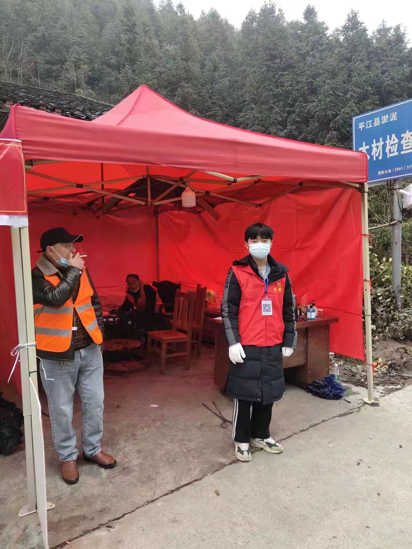 软件技术2-2107班 单擎阳,在淤泥村长平交界疫情防控检查站协助疫情检查。
