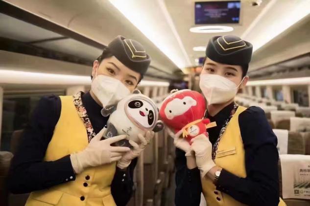 民航学院2019级高速铁路客运乘务专业六十余名学生于2021年11月进入校企合作企业广州动车组餐饮有限公司各基地开展岗位实习,工作内容主要是在高铁动车组各趟列车上进行旅客服务工作。而在今年春运期间恰逢冬奥会,他们的工作还增加了一个非常有意义的内容,那就是包括“冰墩墩”“雪容融”等在内的北京2022冬奥会特许商品的宣传和销售工作。