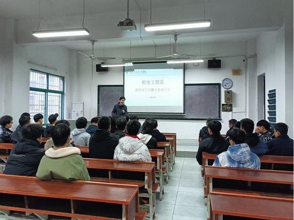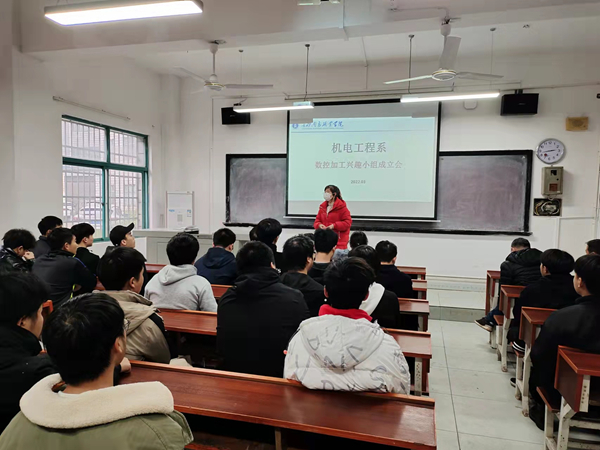 3月22日,为丰富学生的业余生活,激发学生学习兴趣,提高学生动手能力,发挥学生特长,进一步发挥学院在知识、人才、设施设备等方面的资源优势,培养校园文化氛围,提高学生综合素质,为学生的成长搭建新的平台,机电工程系智能制造教研室成立数控加工兴趣小组。数控加工实践教学依托国家数控实训基地设备进行。