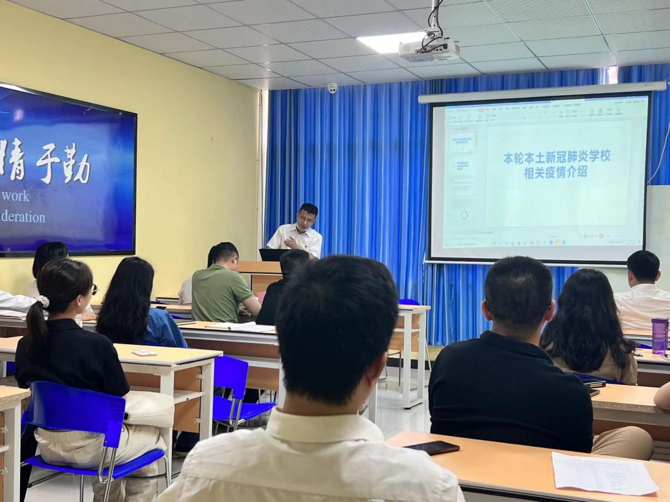 李兵主任首先传达湖南省教育系统关于本轮本土新冠肺炎疫情形势的防控及春季流行病防控的文件要求,并系统的讲解了如何预防新冠疫情及肺结核等疾病的传播等知识要点。