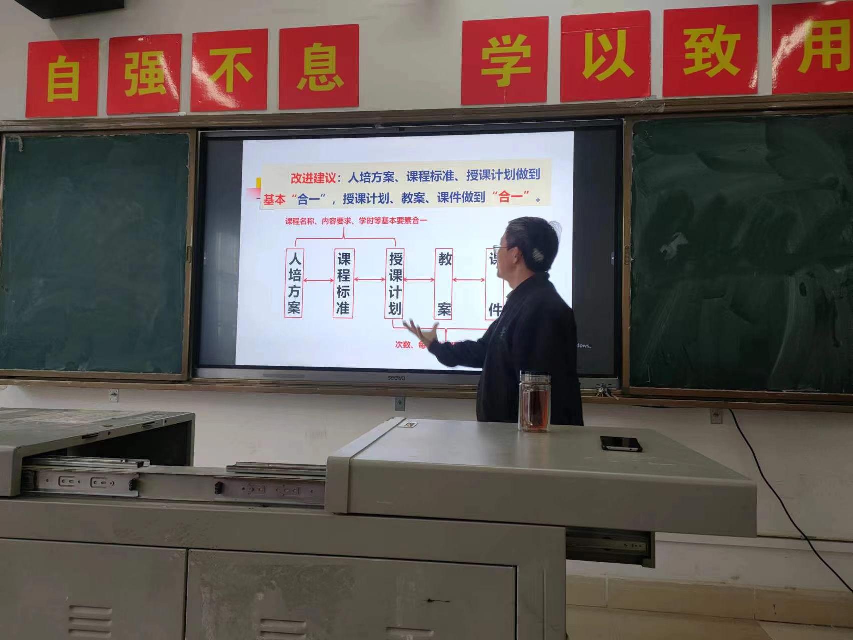 第二阶段的培训,曾教授从两个合一即:人培方案、课程标准、授课计划合一;授课计划、教案、课件合一,到职教改革对高职教师的要求,深入浅出地进行了阐述,使在场的教师们茅塞顿开、豁然开朗,使大家在教学的各个环节中有了标准,在教研教改的征程上有指路明灯。