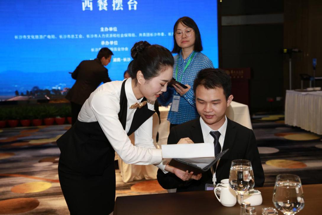 近日,由长沙市文化旅游广电局、长沙市总工会、长沙市人力资源和社会保障局、共青团长沙市委、长沙市妇女联合会共同主办,长沙市旅游饭店业协会承办的2022年长沙市旅游饭店职业技能竞赛在湖南华天大酒店举行。大赛吸引全市28家旅游饭店企业的131名选手参加,他们在“前台接待”“中式铺床+开夜床”“中餐宴会摆台+主题台型设计”“西餐摆台”“中式烹饪”等五个竞赛项目展开了激烈比拼。