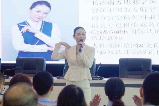 近日,为立足高校服务社会职能,促进高校教育资源辐射社会,结合湖南省空中乘务专业教学团队自身学科与师资优势,民航学院空中乘务专业师生为湖南省长沙监狱警务人员进行了警察公务礼仪培训。此次培训由孙林芳老师主讲,由空中乘务专业曾慧颖、陈湘香、杨莹三名学生进行辅助示范展示。