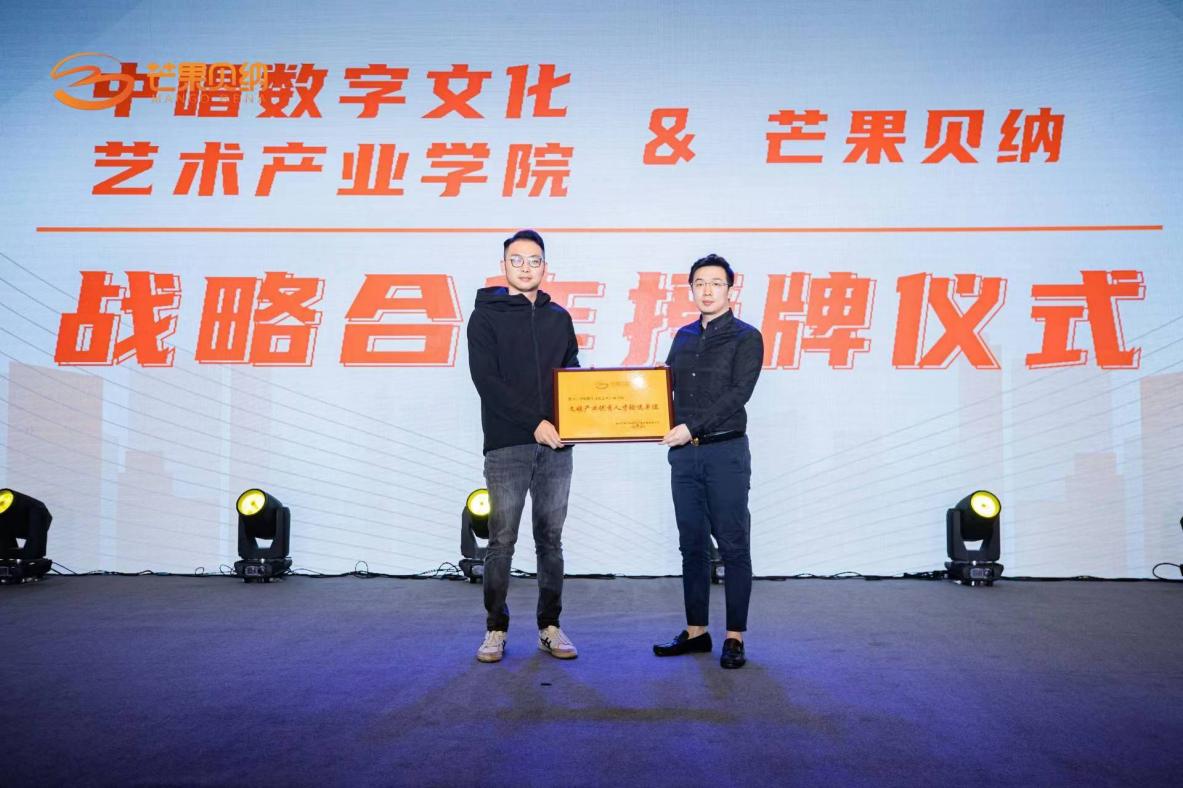 发布会上,双方就如何促成深度合作、互利共赢等方面进行广泛交流并互换意见,并现场授予产业学院“文娱产业优秀人才输送单位”的称号,为芒果贝纳输送优质文化艺术人才。产业学院负责人张中表示,芒果贝纳是我院音乐舞蹈专业今后重要的实践与就业示范基地,希望能通过此次发布会,探讨出良好的实践机制,提升学生社会实践能力,并在交流合作中充分发挥双方优势,依托企业的优秀员工带领我院学生,在实习就业岗位上发挥重要作用,在谋求优势互补的同时,为学生就业培养打下夯实的基础。