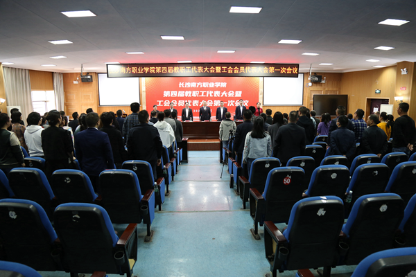 4月11日下午2:00,长沙南方职业学院第四届教职工代表暨工会会员代表大会第一次会议在学校学术报告厅胜利召开。教职工代表、校领导嘉宾、列席代表共98人参加。大会分别由主席团执行主席肖建伟、主席团执行成员王庆云主持。