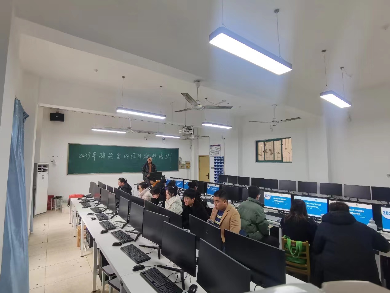 建筑室内设计教研室在学院和系部的统一安排部署下,由教研室主任曾文妮副教授领衔的5人培训讲师团队,从技能抽查的室内设计创意与表现、室内设计CAD制图、室内陈设设计3个模块和建筑装饰技术应用省赛的指令深化设计和建筑装饰工程量清单编制2个模块,对教研室17位专职教师进行了技能培训。培训过程中,讲练结合,老师们受益匪浅。