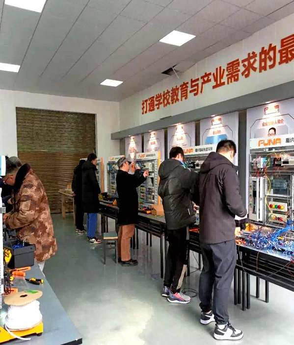 为强化教师专业技能,建设既具备“相应理论和实践教学能力”,又具有“企业相关工作经历,或积极深入企业和生产服务一线岗位实践,能够及时将新技术、新工艺、新规范融入教学”的“双师型”师资团队,培养高素质技术技能人才,2023年寒假,学院机电工程系全体教师开展了为期3天的专业技能培训。培训活动由学院和富纳企业合作开展,培训项目包括职业素养、职业精神在内的“机械装调”“电气装调”等,培训师由富纳企业选派,培训地点在“富纳智能制造产业学院”等实训室,培训考核由企业和学院联合进行。参训教师态度虚心、操作认真,培训效果校企双方满意,达到了“双赢”效果。