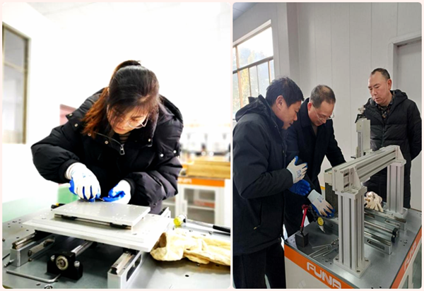 教研室主任徐菊芳及机械装调团队教师在检测操作训练