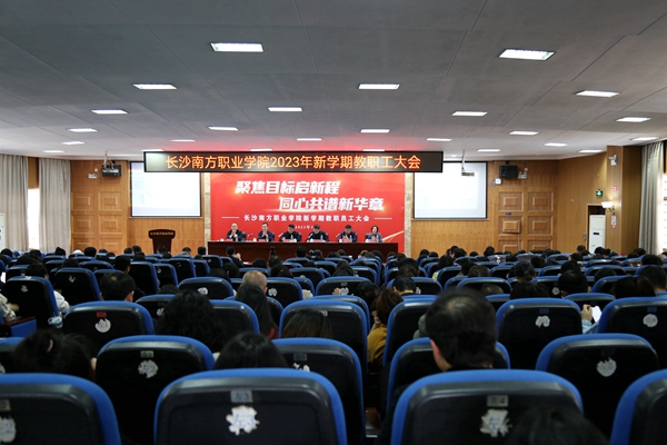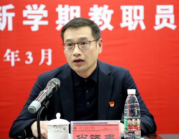 3月7日下午,学校2023年新学期教职工大会在学术报告厅召开,会议以“聚焦目标启新程,同心共谱新华章。”为主题,全面总结回顾了2022年工作,表彰了上一年度表现突出先进集体和先进个人,部署了新一年工作重点?;嵋橛烧降?、校党委书记赵小群主持。校长肖晓春,副校长王金、吴涛、肖建伟、王建辉出席,全体教职员工参加。