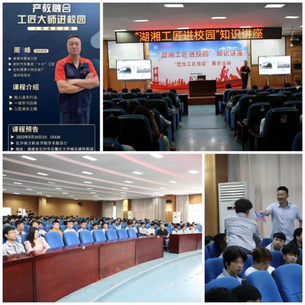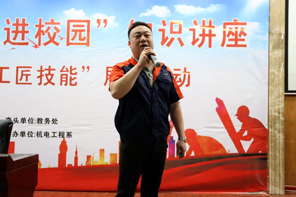 5月16日上午,我校特邀湘潭市莲城工匠、吉利汽车集团“十大”工匠、吉利湘潭公司总装厂周峰在学术报告厅作“湖湘工匠进校园”知识讲座,机电工程系新能源汽车技术专业300余名学生参加学习。
