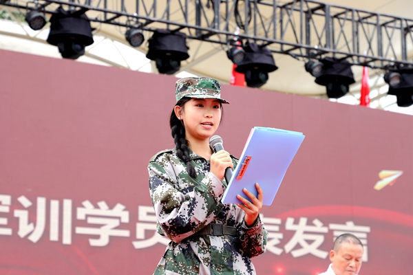 她勉励全体新生:要学以报国,以天下为己任;要学以创新,以穷理为先;要学以成人,以修身为本。志存高远,不负韶华,继续巩固军训期间的学习成果,努力使自己成为“有理想、有道德、有文化、有纪律”的“四有”青年,为实现中华民族伟大复兴的中国梦贡献自己的青春力量。